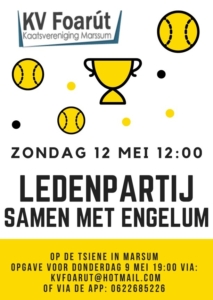 2 mei De ledenpartij samen met Engelum Zondag 12 mei is het weer zover! De ledenpartij samen met Engelum staat op het programma. Er wordt op’e Tsiene met de leren bal gekaatst. Geef je op! opgave kan tot donderdag 9 mei 19:00 uur! Coby Algemeen 0 Reacties Gerelateerde berichten Schoolmeisjes Geplaatst op 20th juli 2025 ~ 0 Reacties De prijswinnaars bij de schoolmeisjes klasse A en B. A-Klasse 1e prijs: Sygrid Bosch Aisha Mahmoud 2e prijs: Bente van der Woud Lisa Hornstra B-klasse Kaatspartij 15 Juli afgelast Geplaatst op 6th juli 2012 ~ 0 Reacties Beste leden, Wij hebben besloten de kaatspartij op 15 juli voor senioren en jeugd af te lasten daar cafe ’t Grauwe Paard zich als sponsor Marsumer succes dit weekend Geplaatst op 2nd mei 2022 ~ 0 Reacties Jelte Meesters 1e prijs d.e.l KNKB jongens in Raerd. In een lijst van 16 parturen won hij samen met Jan Tymen Eisma en Rutger Kumbagsila.De